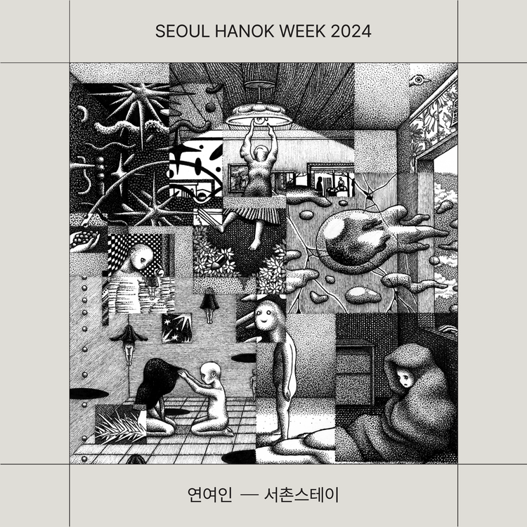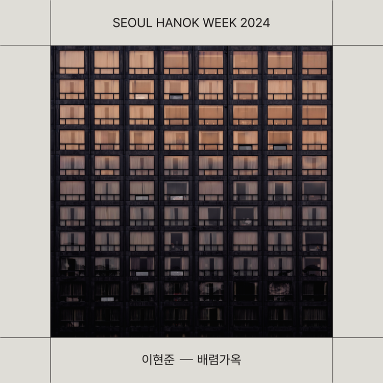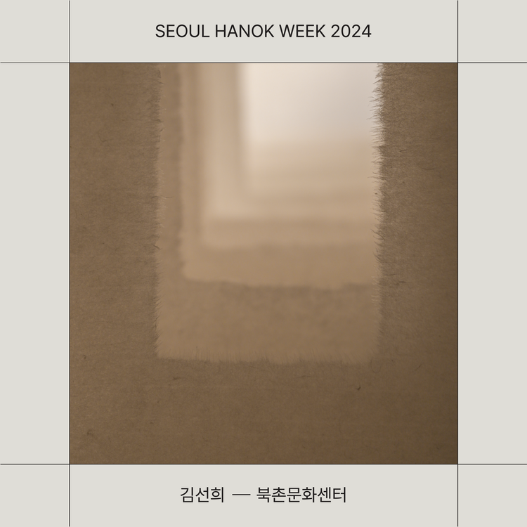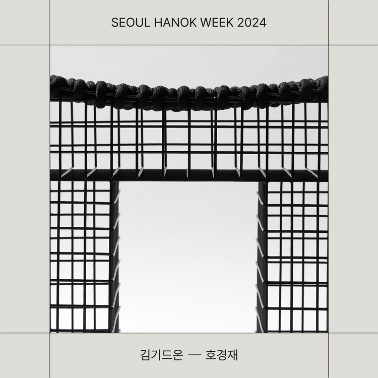 전시 브랜딩은 서울 한옥주간의 정체성과 연결성을 유지하면서도, 녹색을 배제하고 블랙과 아이보리의 조합으로 한옥의 장엄함, 우아함, 그리고 고요함을 표현했습니다. 선으로 이루어진 단순한 정사각형 그래픽은 공간의 구조를 은유하며, ‘한옥의 공간과 울림’이라는 전시의 주제를 시각적으로 전달했습니다.