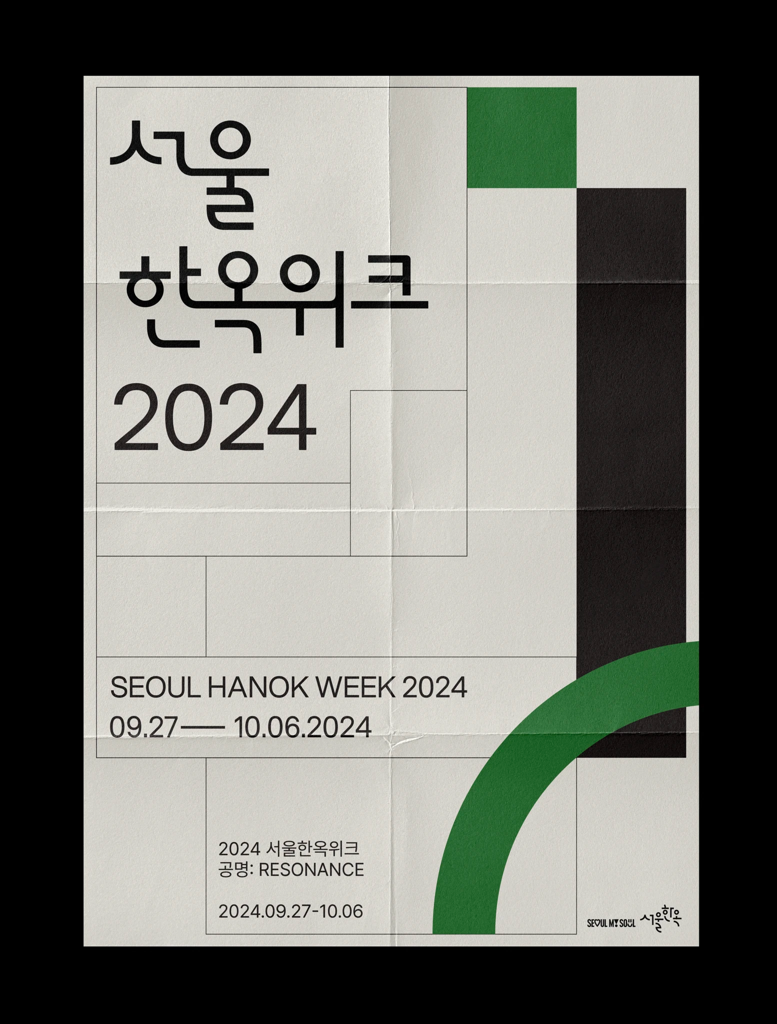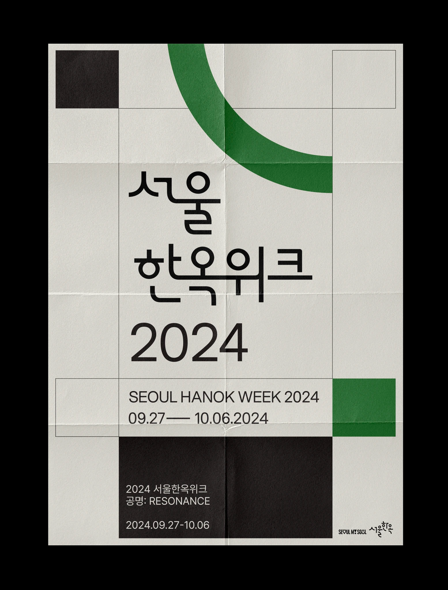 The branding for Seoul Hanok Week used the existing green color from the ‘Seoul Hanok’ identity as a point color, complemented by black and ivory tones to convey the natural and grounded image of Hanok. Korean typography was utilized to visually express the elegant curves and structure of Hanok architecture. The main graphic motif consisted of various square compositions, symbolizing spatial balance and the geometric beauty of traditional architecture, reinterpreted in a modern, minimal way.