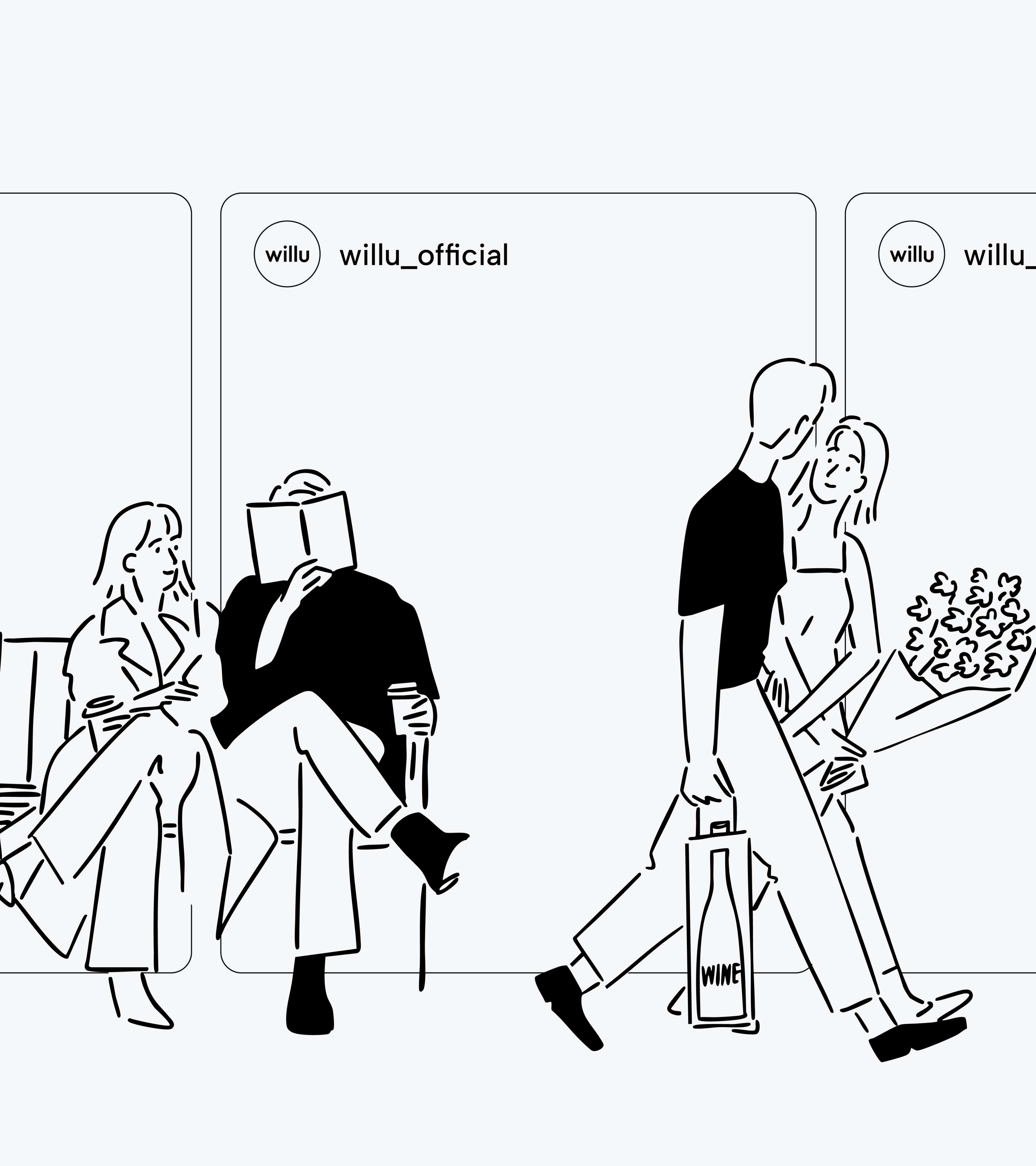 불필요한 장식이나 과잉된 설명 없이, 단순한 선 하나로 감정을 전달하는 방식은 Willu가 지향하는 절제된 진심, 존중 기반의 관계와 연결됩니다. 이러한 일러스트레이션은 누구나 자신을 투영할 수 있도록 의도적으로 여백을 남기고, 감정의 과잉이 아닌 공감의 가능성을 열어두는 역할을 합니다.