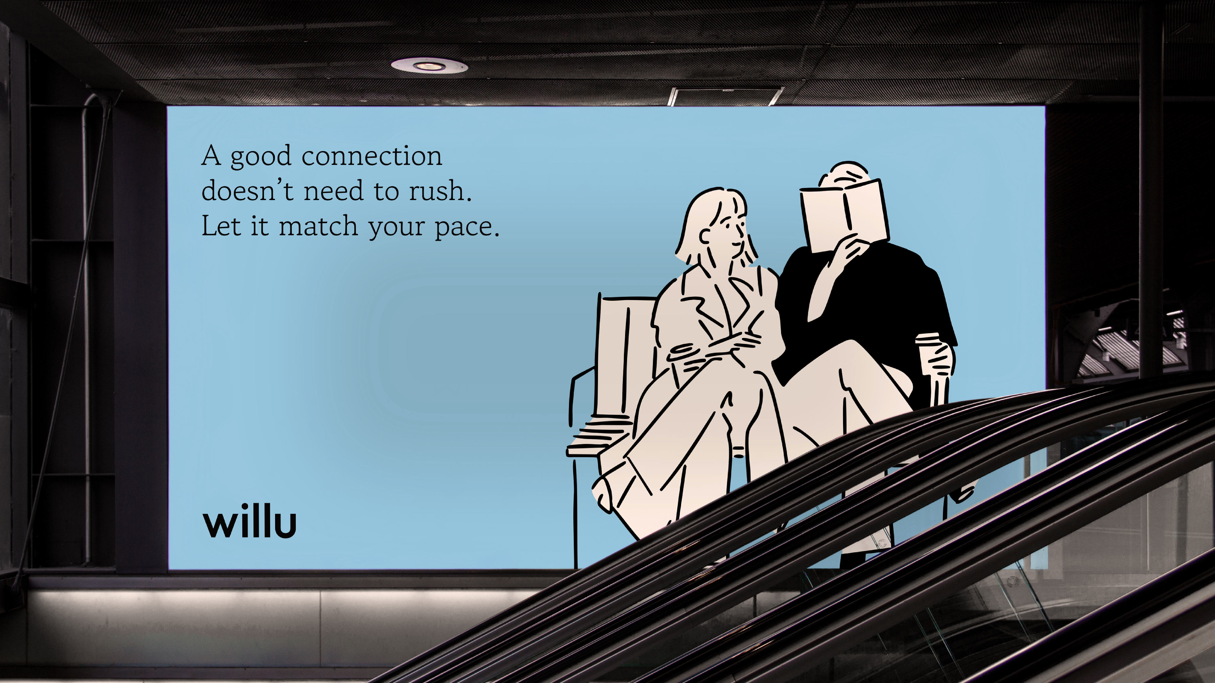 Willu is a curation-based relationship platform that values sincerity over stimulation. TIN developed the full brand identity, from naming to illustration, to reflect quiet courage and honest connection.