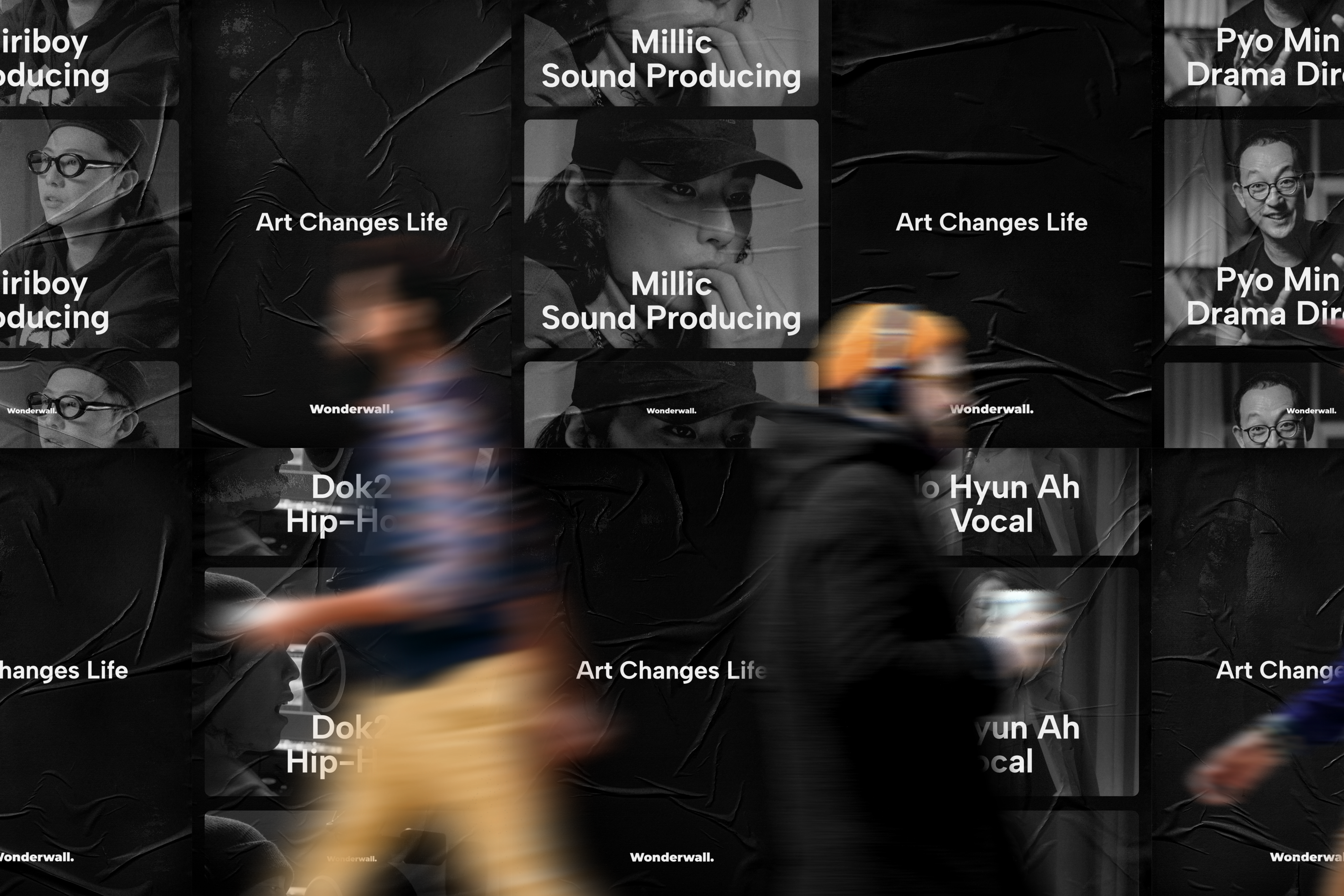 황정민, 공효진, 하정우, 악뮤 이찬혁, 도끼, 자이언티, Pink Sweat$, 박정민 등 국내외 아티스트들과의 협업을 통해 Wonderwall은 예술적 감도와 대중적 공감이 공존하는 플랫폼으로 성장했습니다.